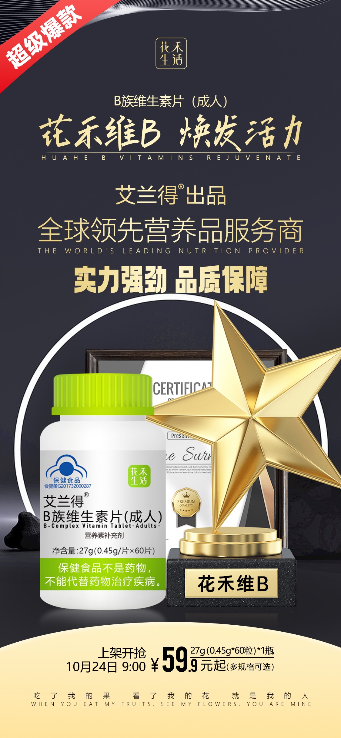 花禾维B比市面上的B族营养含量更高,一片可以补充一天营养所需,也不再需要为了补充营养去吃高热量食物。